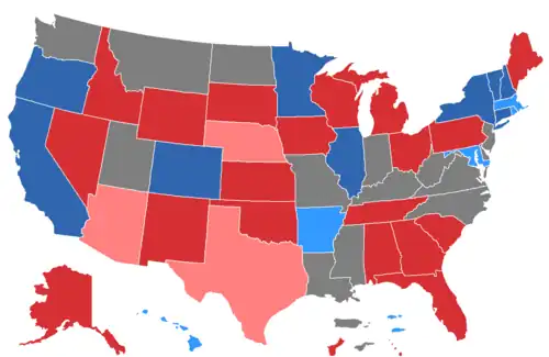 Bei den Gouverneurswahlen ergab sich ein gemischtes Bild. Laut politischen Beobachtern galten Wechsel der Parteizugehörigkeit der jeweiligen Gouverneure als möglich, und zwar sowohl zu Gunsten der Republikaner als auch zu Gunsten der Demokraten. Dies galt sowohl für offene Wahlen als auch für jene, bei denen der Amtsinhaber kandidiert.