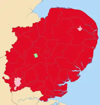 | East Northamptonshire | 43,85 | 21.596 | 6.935 | 75,69 | 24,31 |