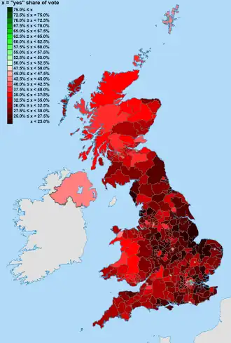 | Region | Wahlbeteiligung (%)[25] | "Nein"-Stimmen | "Ja"-Stimmen | Nein (%) | Ja (%) |