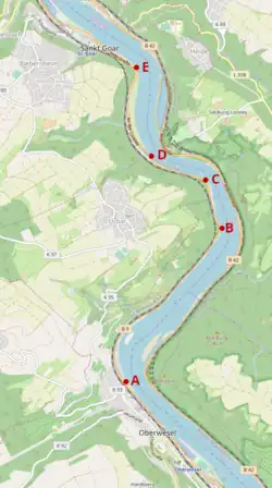 - km 550,57 – km 551,30, Ochsenturm Oberwesel bis unterhalb Tauberwerth