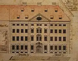Am 23. Juni 1727 wurde der Grundstein unmittelbar an die Annenkapelle gelegt, im Herbst 1728 bestand das Gebäude schon aus vier Stockwerken, am 23. Dezember wurde das Dach fertiggestellt. Die Annenkapelle hatte an der erweiterten Seite wahrscheinlich ein Fenster und Ziersäulen.[3] Das neue Gebäude maß 100 × 45 × 56 Fuß. Nach Einstellung der benötigten Personen wurde das Waisenhaus am 31. Januar 1731 mit 13 Waisen eröffnet.[1]