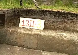 Im August 2015 entdeckten Archäologen im selben Tagebau ein größeres Rippenfragment, Knochenfragmente sowie einen etwa zwei Meter langen Stoßzahn eines Europäischen Waldelefanten.[16] Die Fundstelle auf dem sogenannten Speersockel (Fundstelle Schöningen 13 II, Verlandungsfolge 2) lag etwa 4,5 Meter unterhalb der Fundschicht der Schöninger Speere und 15 Meter vom Fundort des Waldelefanten von Schöningen entfernt. Anhand der Schichtfolge am Fundort ließen sich die Knochen auf ein Alter von rund 300.000 Jahren datieren.