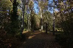 Nach dem Ende des Zweiten Weltkriegs entstand am Waldrand ein Notfriedhof, der bis Anfang 1946 genutzt wurde.[1] Nach Ablauf der Ruhefrist von 25 Jahren ebnete man diesen Friedhof im Jahr 1971 ein. Die Fläche ist heute wieder bewaldet.