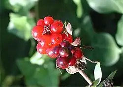 Durch die roten Beeren wird die Verdauungsausbreitung der Pflanze gefördert. Fruchtreife ist von August bis September.