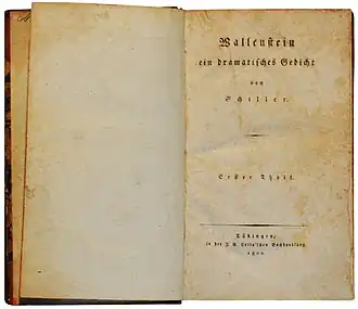 Wallenstein ist die gängige Bezeichnung für eine Dramen-Trilogie von Friedrich Schiller. Sie besteht aus den Werken Wallensteins Lager mit einem längeren Prolog, Die Piccolomini und Wallensteins Tod, wobei Schiller die Trilogie auch in Wallenstein I mit Wallensteins Lager und Die Piccolomini und Wallenstein II, bestehend aus Wallensteins Tod unterteilt hat. Schiller behandelt darin den Niedergang des berühmten Feldherrn Wallenstein im Dreißigjährigen Krieg, wobei er sich frei an den realen historischen Ereignissen orientiert: Wallenstein scheitert auf dem Gipfel seiner Macht, er ist der erfolgreiche Oberbefehlshaber der kaiserlichen Armee, als er beginnt, sich gegen seinen Kaiser Ferdinand II. aufzulehnen. Das Werk spielt im Winter 1633/1634 (also fast 16 Jahre nach Beginn des Dreißigjährigen Krieges) in der böhmischen Stadt Pilsen, wo sich Wallenstein zu jener Zeit mit seinen Truppen aufhält. Im letzten Aufzug wechselt der Schauplatz nach Eger, wohin Wallenstein geflohen war. Hier wurde er am 25. Februar 1634 ermordet.
