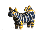 Die 2,1 cm lange und 1,6 cm hohe Figur zeigt einen kleinen vorgestrecktem Kopf, spitze Ohren, und einen hohlen, walzenförmigen Körper. Sie ist am Hinterteil offen, weist stummelartige, gespreizte Beine sowie einen kurzen, hochgestellten Schwanz auf, der nach vorn geringelt ist. Auf dem blauen Glaskörper ist eine weiße Schraubfäden-artige Struktur aufgesetzt angebracht. Auch an den Ohren, dem Schwanz und den Beinen ist eine solche Struktur aufgesetzt, dort ist sie gelb statt weiß.[2]