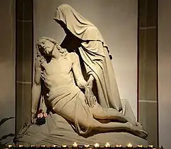 - Eine Pietà, die Darstellung der Maria als Schmerzensmutter, steht in der rechten hinteren Ecke. Sie wurde von August Wäscher,[19] einem Werler Künstler, geschnitzt. Diese Darstellung ist das einzige erhaltene Stück der ursprünglichen Ausstattung.[9]