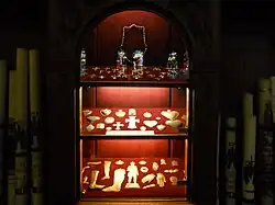 - In früherer Zeit stifteten die Pilger als Dank für erbetene Heilungen häufig Votivgaben. Sehr oft bestanden diese Gaben aus Silberblech und zeigten Nachbildungen der geheilten Körperteile. Nach der Neueinweihung der Kirche im Jahr 1911 wurde darauf verzichtet, diese Arbeiten, wie bis dahin üblich, am Gnadenaltar auszustellen. Heute sind einige dieser Stücke in einer Vitrine im linken Seitenschiff der Kirche und weitere im Städtischen Museum Am Rykenberg, Werl ausgestellt. Heute dienen Geldspenden oder geschmückte Kerzen als Votivgabe, einige der Kerzen sind im Kirchenraum ausgestellt.[10]