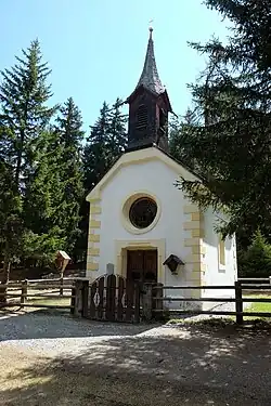 Diese Kapelle ist ein auch für Touristen beliebter Wallfahrtsort des oberen Vinschgaus, zu dem ein 1895 errichteter Kreuzweg vom Dorf Reschen aus über einen steilen, aber asphaltierten Waldweg hinaufführt.
