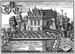 Schon 1691 musste die Kapelle wegen des anwachsenden Besucherstromes erweitert werden. Dafür konnte erneut Zuccalli als Baumeister gewonnen werden. Zehn Jahre später wurde ein Langhaus angefügt. Nach dem Tod Zuccallis im Herbst 1702 übernahm der Landauer Maurermeister Dominicus Magazin (auch: Domenico Mazio oder Dominikus Magzin, gebürtig wie Zuccalli von Roveredo)[3] die Arbeiten. Es entstand ein stattliches barockes Gotteshaus mit drei Altären, das am 13. September 1710 durch den Regensburger Weihbischof Albert Ernst von Wartenberg benediziert wurde. Im Umkreis der Kirche und des Kalvarienberges wurden auch sieben kleine Passionskapellen mit Darstellungen aus der Leidensgeschichte Christi aufgebaut. Diese sind auf dem Kupferstich der Wallfahrtskirche von Michael Wening aus der Zeit um 1705 zu sehen. Von den Kapuzinern wurde 1705 ein Pilgerhospiz eröffnet. Sie übernahmen bis 1803 die Betreuung der Wallfahrtskirche und der Wallfahrer.[1]