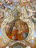 Das grosse Fresko am Chorbogen entstand 1687 und dokumentiert die Bedeutung des Benediktinerordens. Es zeigt einen Triumphzug Marias. Der Wagen wird von Benediktinern gezogen; an der Spitze steht der Ordensgründer Benedikt von Nursia. Dahinter folgen in aufsteigender Rangordnung heilige Mönche, Erzbischöfe, Kardinäle und Päpste. Die gefesselten Gefangenen hinter dem Wagen symbolisieren Häretiker und Schismatiker.