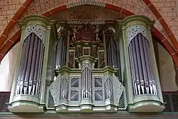 Eine erste Orgel wurde 1466 gestiftet, möglicherweise von Henne Orgeler, der als Baumeister die Stiftung bezeugte. Das kleine Positiv wurde auf der Chorempore aufgestellt und zum letzten Mal 1659 erwähnt. 1661/1662 gelangte es in die Dreifaltigkeitskirche, wo es 1772 ersetzt wurde. Auf der nördlichen Chorempore über der Gerb-Kammer errichtete Meister Paul von Göttingen 1550 eine größere Orgel. Sie verfügte über 13 Register auf einem Manual und Pedal. Die kleine Orgel, die ursprünglich wohl in der Emporenmitte stand, wurde 1552 auf die 1550 errichtete Südempore umgesetzt. Die große Orgel wurde nach den Schäden von 1646 durch den Dreißigjährigen Krieg instand gesetzt und farblich neu gefasst. Vermutlich wurde auch das Schnitzwerk erneuert. Durch Orgelbauer Johannes Bien aus Blankenau erfolgte ein Umbau und eine Umsetzung in die Mitte des Chors. Die Disposition mit 13 Registern ist weitgehend die von 1550. Ungeklärt ist, auf wen und wann die Verbreiterung des Hauptwerk-Prospekts um die zwei trapezförmigen Basstürme und die Gestaltung mit den zwei Rundtürmen und drei Flachfeldern in derselben Höhe zurückgehen. Förster & Nicolaus Orgelbau bauten hinter dem historischen Prospekt ein neues Werk mit zwei Manualen und 35 Registern und ergänzten die beiden polygonalen Pedaltürme in der Emporenbrüstung. 1960 folgte eine Umdisponierung.[1]
