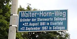 - ↑ Solinger Tageblatt: Galileum-Zufahrt wird Walter-Horn-Weg, 21. Januar 2018