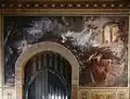 Das Gemälde ist als Triptychon nach Art eines Altarretabels konzipiert. Die seitlichen Felder sind vom Hauptbild durch gemalte Säulen abgegrenzt, die bekrönende Rundbögen tragen. Auch die Zone darüber bis unter das Gewölbe ist ausgemalt.