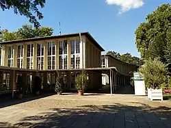 Das Gebäude wurde 1934/35 vom Architekten Eduard Krüger zwischen den einige Jahre früher errichteten Gebäuden des Parkhotels und des Trinktempels erbaut. Stilistisch steht sie zwischen der traditionellen Heimatschutzarchitektur und dem Neuen Bauen.[1]