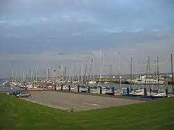 ![]() Blick vom Wanger Außentief auf den Hafen von Horumersiel | ||