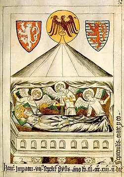 Der Sohn des gefallenen Heinrich VI., Heinrich VII. von Luxemburg wurde römisch-deutscher Kaiser. Sein Wappen der Grafschaft Luxemburg ist im Trierer Codex Balduini (1320) gemalt worden. Es zeigt den steigenden roten goldbewehrten, goldgezungten und goldgekrönten Löwen auf einem zwanzigmal silbern und blau geteilten Felde. Die zehn blauen Balken, auch „Ritterstraßen“ genannt, haben sich, im Gegensatz zum gekrönten Löwen, in der Nachfolge nicht vererbt, zeigen aber eventuell die Macht des Heinrich VII. von Luxemburg.