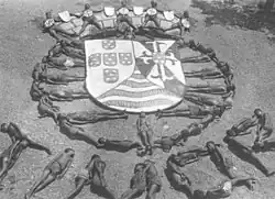 Das portugiesische Motto im Spruchband bedeutet übersetzt: Ehre, Vaterland und Volk.