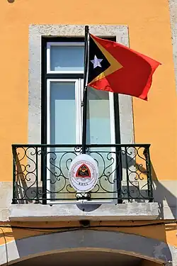 Die FRETILIN versuchte neben dem bewaffneten Widerstand auch auf der diplomatischen Ebene gegen Indonesien vorzugehen. Die Vertreter der Demokratischen Republik Osttimor verwendeten auf ihrem Briefkopf ein Emblem, das die Elemente des heutigen Wappen in einer ähnlichen Aufmachung zeigt.[4] 1987 wurde für den militärischen Arm des Widerstands, der FALINTIL, eine eigene Flagge mit neuem Wappen eingeführt. Die osttimoresische Dachorganisation CNRT übernahm später die Symbolik.