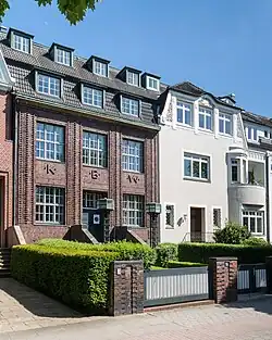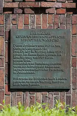 ![]() Warburg-Haus mit den Initialen KBW der ehemaligen Kulturwissenschaftlichen Bibliothek Warburg im Mauerwerk, 2015 | |