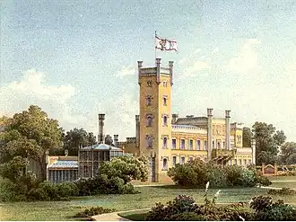 Zum Ende des 19. Jahrhunderts starb die Familie in Mecklenburg aus. Stolpe wurde Teil des großherzoglichen Domaniums, und Quadenschönfeld kam 1883 an die Familie von Bernstorff.[6] Der von Friedrich Wilhelm von Warburg begründete Zweig siedelte sich in Hohenlandin, heute Ortsteil von Schwedt/Oder, in der Uckermark an. Sein Sohn Wilhelm Georg von Warburg (1820–1885) ließ hier Warburg House im Tudorstil erbauen.[7] 1865 verkaufte er das Anwesen und zog nach Dresden.[8]