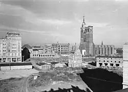 Bei einem Luftangriff während des Zweiten Weltkriegs wurde das Gebäude im Jahr 1945 schwer beschädigt. Die Ruine des Gebäudes blieb auch nach der Trümmerberäumung des Umfelds zunächst bestehen und war zumindest 1958 noch vorhanden. Es wurde dann, obwohl es als unter Denkmalschutz stehend beschrieben wird, später jedoch abgerissen. Bei den Bauarbeiten in Vorbereitung des Baus des Allee-Centers wurden 1997 noch Reste von Gewölben des Gebäudes festgestellt.[8]