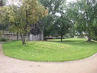 Stadtmauer am Standort der Wasserburg mit Verzierungen.