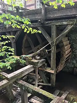 - dem unterkellerten eingeschossigen Haus der Wassermühle als Umbau von 1789 (Inschrift) in Fachwerk mit Steinausfachungen, Krüppelwalmdach in Hohlpfannendeckung und größerer Dachgaube mit Satteldach, Ladebalken und den Ladeluken. Zum Mühlbach steht eine hohe Mauer aus Feldsteinquadern, an der das oberschlächtige, früher hölzerne, später eiserne Mühlrad ist. Der Stau hat vier Gleitschütze und den Aalfang. Die Inneneinrichtung blieb erhalten. Die Mühle war in ihrer ursprünglichen Konstruktion noch bis 1975 für zwei Mahlgänge in Betrieb. Danach ermöglichte bis in die 2020er Jahre ein Elektromotor den Mahlbetrieb für u. a. Hafer für die Pferde des zugehörigen Landwirtschaftsbetriebes. Bei hohem Wasserstand kann die Mühle heute wieder in Betrieb genommen werden.[2]