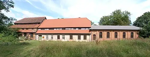 Nach Osten schließt sich giebelseitig das ehemalige Wohnhaus an, das 1750 als Papiermühle auf den Fundamenten eines älteren Gebäudes errichtet wurde. Es hat ein massives Untergeschoss, das Obergeschoss und die Rückseite bestehen aus Ziegelfachwerk. Das Krüppelwalmdach besitzt einen Dachhecht auf jeder Seite. Den östlichen Abschluss bildet ein eingeschossiger Backsteinbau mit Lisenengliederung und Satteldach mit Teerpappe.