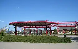 - Wismar ZOB als Zentraler Omnibusbahnhof von 2002 mit markanter Dachkonstruktion, 11 Haltestellen für etwa 10 Linien im VBB Verkehrsverbund Berlin Brandenburg für Regional- und Stadtverkehr