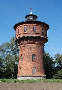 Der Wasserturm wurde in den Jahren 1869 bis 1872 als Wasserversorgung für das Bahnbetriebswerk Eilsleben errichtet. Bedingt durch den Deutsch-Französischen Krieg 1870/71 gab es eine Bauunterbrechung des Vorhabens. Seine Höhe beträgt 24 Meter. Im Turmkopf befindet sich ein vier Meter hoher Wasserbehälter mit einem Durchmesser von acht Metern, der 200 m³ Wasser fassen konnte. Der Durchmesser des Turms beträgt in fünf Metern Höhe zehn Meter. Der aus Ziegeln gebaute Turm ruht auf einem aus Bruchsteinen erstellten Sockel. Bedeckt wird der Turm von einer hölzernen Dachkonstruktion.