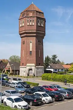 Der sechsgeschossige verklinkerte achteckige 42,70 m hohe Wasserturm mit verputztem Sockelgeschoss und hohem rundbogigem Portal, zweifach überkragendem Aufsatz und Mansard-Zeltdach sowie einem Behältervolumen von 1000 m³ wurde 1907/08 von der Firma Herdejürgen & Harmsen für die Großherzoglich Oldenburgischen Staatseisenbahnen gebaut. Er ging später über in das Eigentum des Oldenburgisch-Ostfriesischen Wasserverbandes (OOWV). Er wurde 1973 stillgelegt, nachdem der Rathausturm von 1969 als Wasserturm 1972 den Betrieb aufnahm. Seitdem steht das Gebäude leer. Die Bochumer Eigentümergesellschaft bot den Turm längere Zeit zum Verkauf an.[1][2][3]