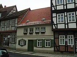 Das zweigeschossige Fachwerkhaus ist niedriger als die umgebende Bebauung, es entstand in seinem Kern im Jahr 1674. Um 1800 wurde es verputzt und darüber hinaus die Gliederung verändert. Markant sind ein profiliertes Putzgesims sowie im Erdgeschoss befindliche Fensterfaschen. Das Erscheinungsbild wird maßgeblich von den Fensterläden im Erdgeschoss geprägt. Besonders bemerkenswert ist die Gestaltung des linken Erdgeschossfensters, das als Schaufensterlaterne gestaltet ist.