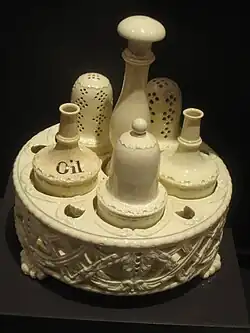 Um 1765 stellte er erstmals creamware her, ein rahmfarbenes Steingut. Sein dünner Glasurauftrag ließ die Feinheit des Reliefs deutlicher hervortreten. Die Lieferung eines Speiseservices an Königin Charlotte prägte dafür auch den Begriff Queens-ware. Weiterentwicklungen wurden „Pearl-Ware“ und „White-Ware“ genannt. Daneben entwickelte Wedgwood einen sehr harten, mit Mangan- und Eisensalzen schwarz gefärbten, feinkörnigen Scherben, der mit großer Präzision ausgeformt werden konnte und unglasiert blieb. Als Basaltware oder Egyptian Black im Handel, wurde es auch außerhalb von Staffordshire nachgeahmt. Seit etwa 1775 formte Wedgwood seine Gefäße und Dekorelemente auch in pastellfarbenen Materialien aus: Mit Metalloxyden durchgefärbte, schwerspathaltige Massen wurden zu unglasierter Ware verarbeitet, die eine matte, biskuitartige Oberfläche erhielten. Die verwendeten Farben waren überwiegend mattblau, aber auch seegrün, gelb und grau. Geschmückt war diese Jasperware wie auch schon die Basaltware zum Teil mit aufgelegten Reliefs aus weißem Ton. Basaltware und Jasperware werden oft dem Steingut zugerechnet, doch sind sie dichter gesintert, wasserdicht und daher besser als Steinzeug bzw. als Weichporzellan zu klassifizieren.