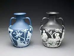 Wedgwoodware bezeichnet keramische Produkte, die dem Stil des englischen Herstellers Josiah Wedgwood folgen, insbesondere die farbige, zum Teil mit weißen Auflagen versehene Jasperware. Es handelt sich dabei um verschiedene Varianten von Steingut und anderen, härteren Keramiksorten. Steingut wurde in England auf der Basis der älteren „white salt-glazed stoneware“ entwickelt und von Wedgwood weiter dem Porzellan angenähert. Sein 1757 gegründetes Unternehmen nahm bald industrielle Züge an. Zugleich schuf er einen neuen Steingutstil, indem er dem Geschmackswandel seiner Zeitgenossen zum Klassizismus folgte, sich von antiken Vorbildern inspirieren ließ und durch Heranziehung von Entwerfern wie John Flaxman höchste künstlerische Qualität anstrebte. Sie bevorzugten jetzt klare, ebenmäßige Linien statt bizarrer Rokokomotive, elegante statt voluminös ausladende Formen, feinreliefierte statt buntbemalte Oberflächen.