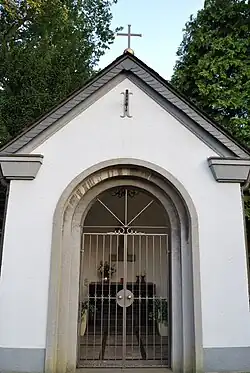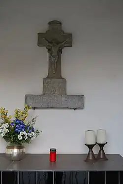 Nachdem die in der Kapelle aufgestellte Marienstatue gewaltsam entwendet wurde, fand man bei den Renovierungsarbeiten ein bis dahin unter dem Putz verborgenes Steinkreuz.