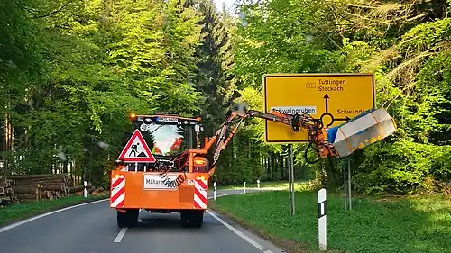 - ↑ Die Ausführung des Pfeils im Wegweiser ist nach den RWB nicht zulässig. Forschungsgesellschaft für Straßen- und Verkehrswesen (Hrsg.): Handbuch zu den RWB 2000. FGSV-Verlag, Köln 2001, S. 53.