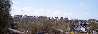 ![]() Blick auf den Wehberg von der Bahnbrücke am Neuen Ev. Friedhof