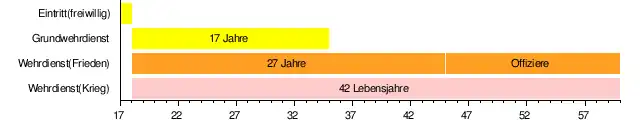 Dauer der Wehrpflicht in Preußen (in Lebensjahren)