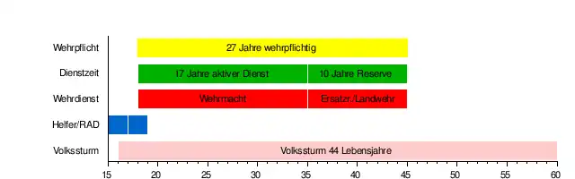 Dauer der Wehrpflicht im Dritten Reich (in Lebensjahren)