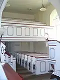 1749 wurde das barocke Dachwerk über dem Saal errichtet, außerdem wurde die Empore eingebaut. Die Brüstung, das Gestühl sowie die Kanzel sind bis heute erhalten geblieben. In diesen Jahren erhielt die Kirche auch eine barocke Ausmalung, die heute teilweise freigelegt und auch bei der Restaurierung ergänzt und erweitert wurde.