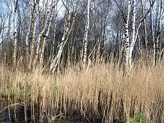Im Hochmoor kommen neben verschiedenen Torfgräsern Arten wie Glockenheide, Rosmarinheide, Moosbeere, Wollgras, Moorlilie und Sonnentau als typische Pflanzen vor. Dort leben Wiesenpieper, Feldlerche und Rohrammer. In den abgetorften Niedermoorgebieten befinden sich Schilf, Rohrkolben, Flatterbinsen und Seggen, an Vögeln leben dort Schilfrohrsänger und Sumpfrohrsänger.