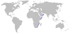 Das Verbreitungsgebiet des Weißgepunkteten Stierkopfhais befindet sich im Küstenbereich Ostafrikas und der Arabischen Halbinsel. Es reicht von Südafrika (KwaZulu-Natal) über Mosambik und Somalia bis zum Oman.
