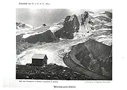 - ↑ Festschrift zum Fünfundzwanzigjährigen Bestehen der Section Frankfurt a. M. des Deutschen und Oesterreichischen Alpenvereins 1869–1894. (PDF) Das Sectionsgebiet und die Unterkunftshäuser in den Oetzthaler Alpen: Die Weisskugelhütte. In: dav-bibliothek.de. 1894, S. 60, abgerufen am 20. April 2020.