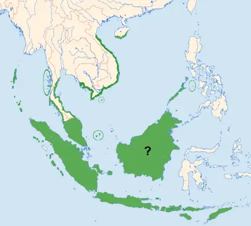 Weiter kommt die Art auf fast allen Inseln des Sundabogens vor, beginnend mit den Andamanen und Nikobaren im Nordwesten, über die großen Inseln Sumatra und Java und die benachbarten Inseln bis zu den Kleinen Sundainseln, einschließlich einiger Inseln in der Floressee, möglicherweise auch im Süden Sulawesis.
