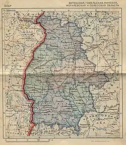 1924 und 1926 wurde sie um einige westrussische Gebiete vergrößert (Mogiljow, Witebsk, Gomel) und 1932 ein autonomer Bezirk (Dsjarschynsk) für die polnische Minderheit eingerichtet, 1935 aber wieder aufgelöst. Stattdessen kamen 1939, gemäß dem Hitler-Stalin-Pakt, die ehemals polnischen Gebiete Weißrusslands hinzu (einschließlich Bezirk Białystok), von denen die Weißrussische SSR wiederum 1940 Wilna (Vilnius) an die Litauische SSR abtrat.
