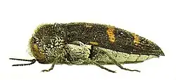 | Weißschuppiger Ohnschild-Prachtkäfer | ||||||||||||