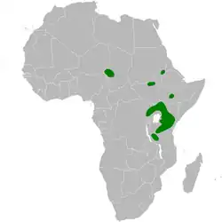 Zum Verbreitungsgebiet gehören der Westen von Kenia sowie Zentralkenia. Sie besiedelt außerdem Uganda, Tansania, den Nordosten von Zaire, den Osten des Sudan und den Westen des Tschads.