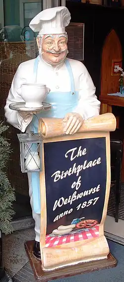 - ↑ Dieter Wunderlich: Münchner Weißwurst. Geschichte der Weißwurst. In: dieterwunderlich.de. 2008, abgerufen am 25. Januar 2013.