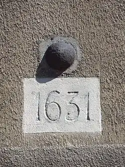 Bemerkenswert ist eine in die Fassade eingemauerte Kanonenkugel, die möglicherweise vom Vorgängerbau übernommen wurde.[4] Ein Inschriftenstein trägt dort die Jahreszahl 1631. Die Kanonenkugel erinnert daran, dass der Feldherr Johann T’Serclaes von Tilly in diesem Hof bei der Belagerung und Zerstörung Magdeburgs im Jahr 1631 zeitweise sein Hauptquartier hatte. Zwei weitere Kanonenkugeln befanden sich ursprünglich auf den Wirtschaftsgebäuden. Es sind mehrere Briefe Tillys überliefert, die in dieser Zeit entstanden sind. Am Abend des 9. Mai 1631 wurde hier von Tilly der Kriegsrat abgehalten, auf dem der Sturm auf Magdeburg, der zur Zerstörung der Stadt führte, für den 10. Mai festgelegt wurde.[5] Am 5. Juni 1631 zog Tilly dann aus Westerhüsen wieder ab.